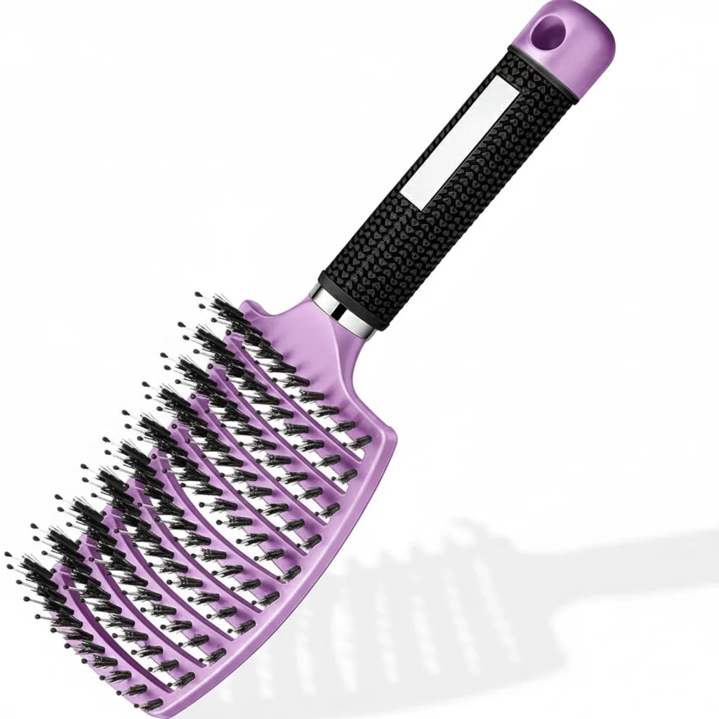 Grâce à sa conception innovante combinant des poils de sanglier et des picots en nylon, La Brosse Magique Démêlante minimise la friction. Cela réduit significativement la casse des cheveux et dompte l'électricité statique pour une chevelure plus lisse.