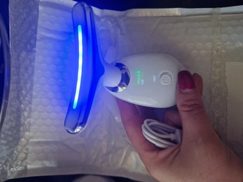 Grâce à la technologie EMS et la luminothérapie, il stimule la production de collagène, raffermit les muscles du visage et du cou, et réduit l'apparence des rides pour une peau visiblement plus jeune et éclatante, sans chirurgie.
